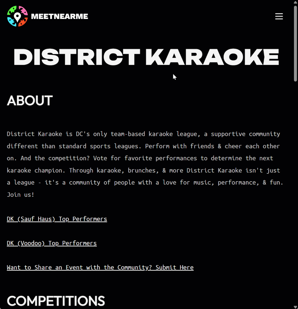 Scroll down to Competitions. Here you’ll see different competitions and matchups for the night. Find you night/venue. Further down you’ll see tonight’s Leaderboard